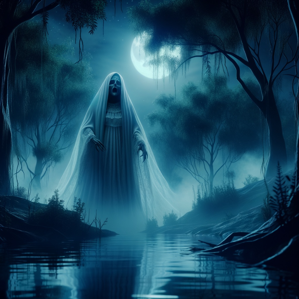 La Llorona, or The Weeping Woman, is a legendary ghost figure from Latin American folklore. She is often described as a woman in a white gown who roams near rivers or lakes, crying for her lost children.